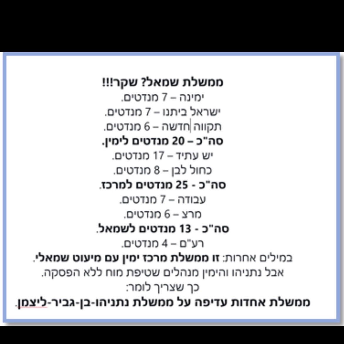 ממשלה לאומית־ימנית אמיתית תדאג גם לשמאלנים במדינה, תייצר פה ממשלה דמוקרטית שתוכל לעבוד למען האזרח הפשוט ולא תהיה עסוקה במלחמות פנימיות כל היום.